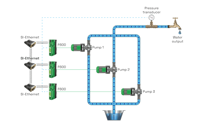 Cascade mode allows the F600 to operate with up to 4 assist pumps to aid the primary pump when required.