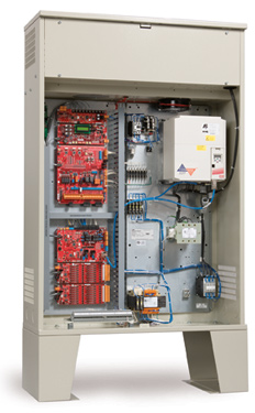 The MCE Motion 4000™ traction elevator package is the ideal solution for machine-roomless installations. 4000 provides service to 32 floors/64 openings, speeds to 500 feet per minute, group control of up to 6 cars, provides a standard wavelength/infrared video-assisted rescue system, remote governor overspeed switch set/reset, and remote brake picking capability. Motion 4000 makes the jobs of installers, adjusters, and maintenance personnel as straightforward as possible, stressing minimal hardware requirements, “out-of-the-box” job readiness, and simple adjustment.