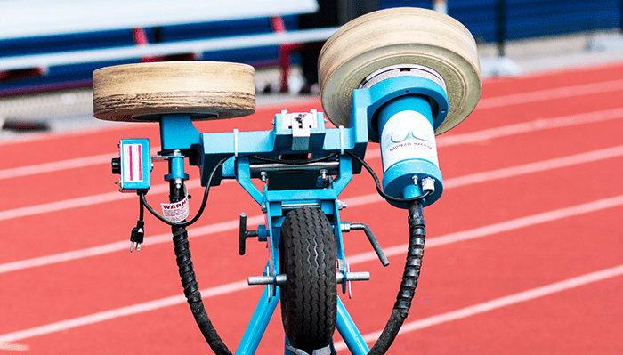In baseball or softball, a pitching machine is often used in practice to deliver a pitch to a batter. Similar pitching machines deliver tennis, soccer, or volleyballs to a player to aid them in training..