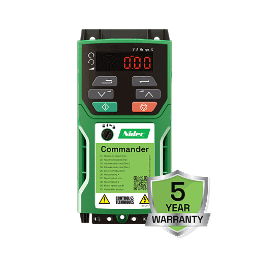 Commander C combines efficiency and reliability to offer optimum performance for a wide range of applications. With many essential features built in, including PLC capabilities for simple programming needs, dual STO safety function, braking transistor and PID control, it provides a compact solution for any installation.