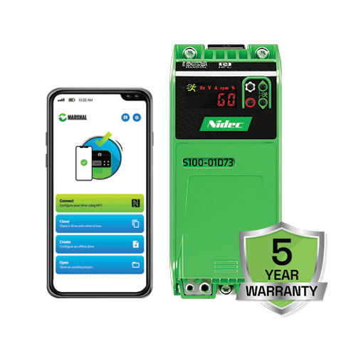 Control Techniques has a long tradition of challenging the status-quo with innovative ideas and making a profound impact in the drives industry. And we've done it again with Marshal: Control Techniques is the 1st drive supplier to implement NFC technology as standard on a drive and offer the Marshal app interface at no extra cost.