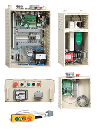 Motion 3000ES is a field programmable escalator control. Motion 3000ES controls provide hardware flexibility, allowing enclosure size and motor drive, control keypad, and processor board locations (in cabinet or remote) to vary depending on installation needs. Escalator controls are available in VVVF variable speed or WYE/delta direct line control versions.