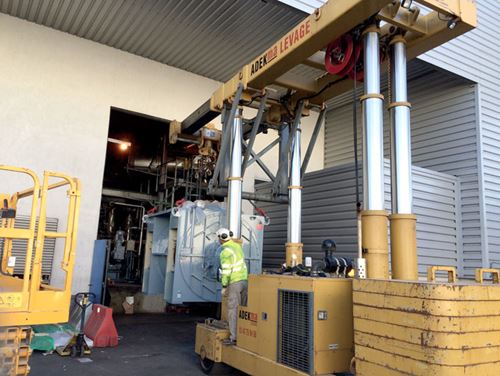 Les opérations de manutention ont été réalisées à l'aide d'un engin de levage lourd équipé de quatre vérins hydrauliques pour manœuvrer l'alternateur de 29 tonnes.