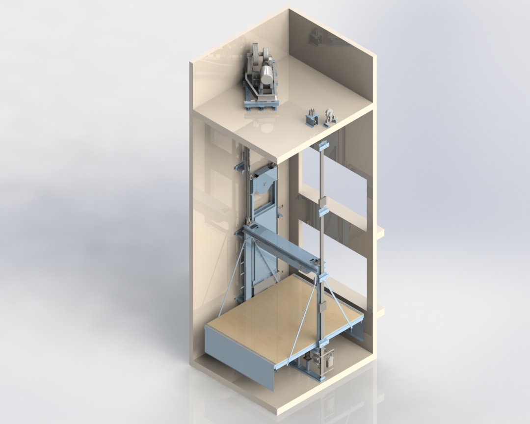 - Sling – platform – tie rods – guide shoes
