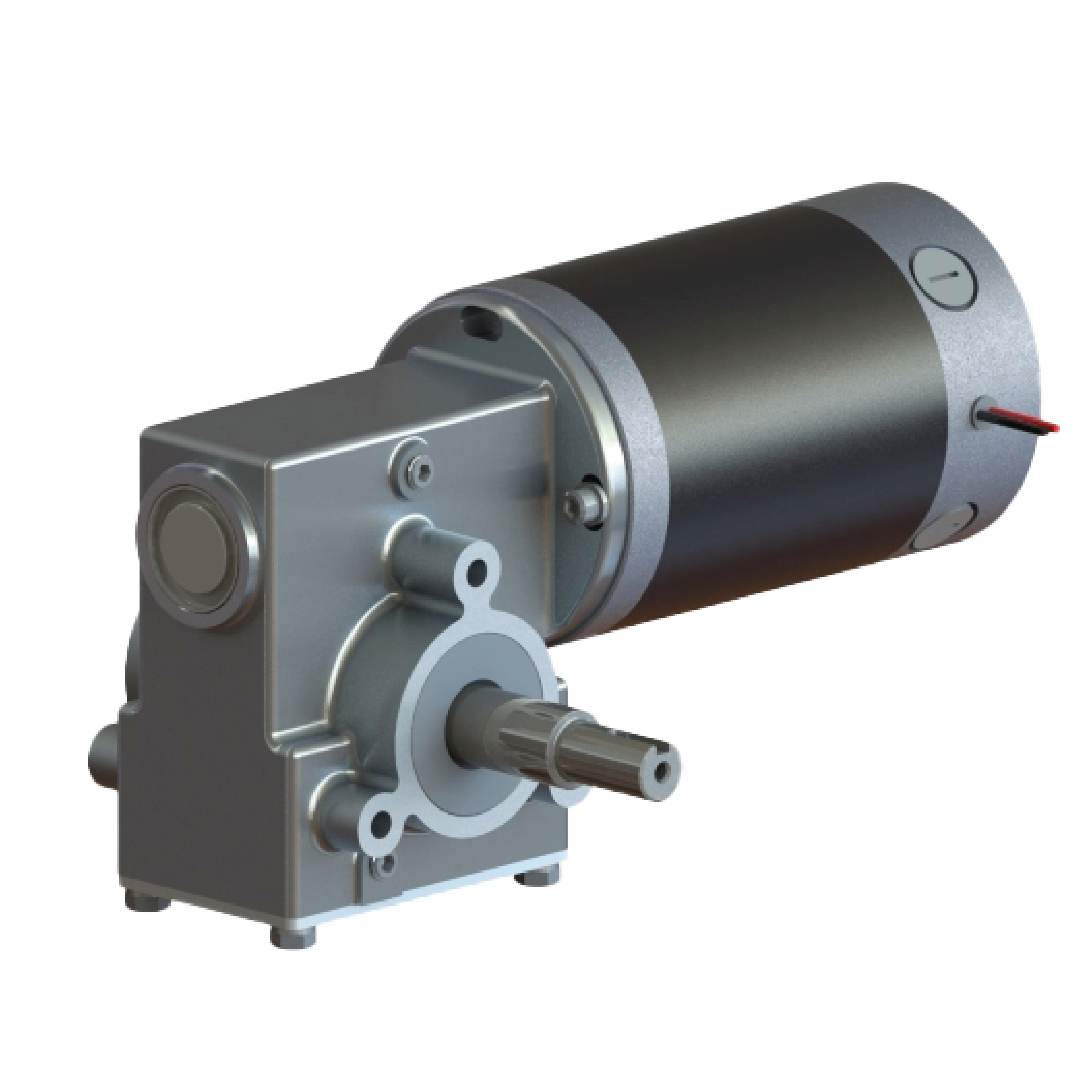 PMDC brushed right angle gearmotors feature a high efficiency worm gear design that allows you to downsize the motor and draw less current for a given load — creating a more energy efficient solution with a smaller footprint. They have the distinct advantage of generating very low audible noise. The right angle output configuration results in a compact, low-profile mounting.